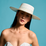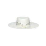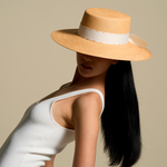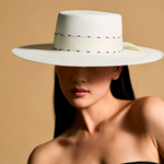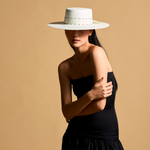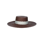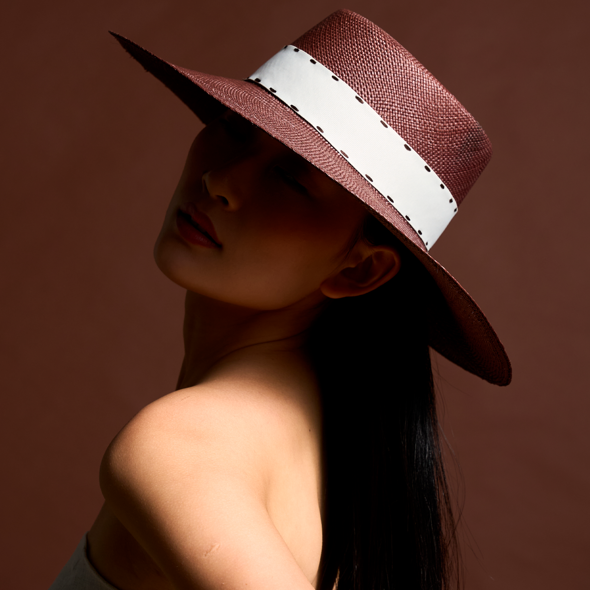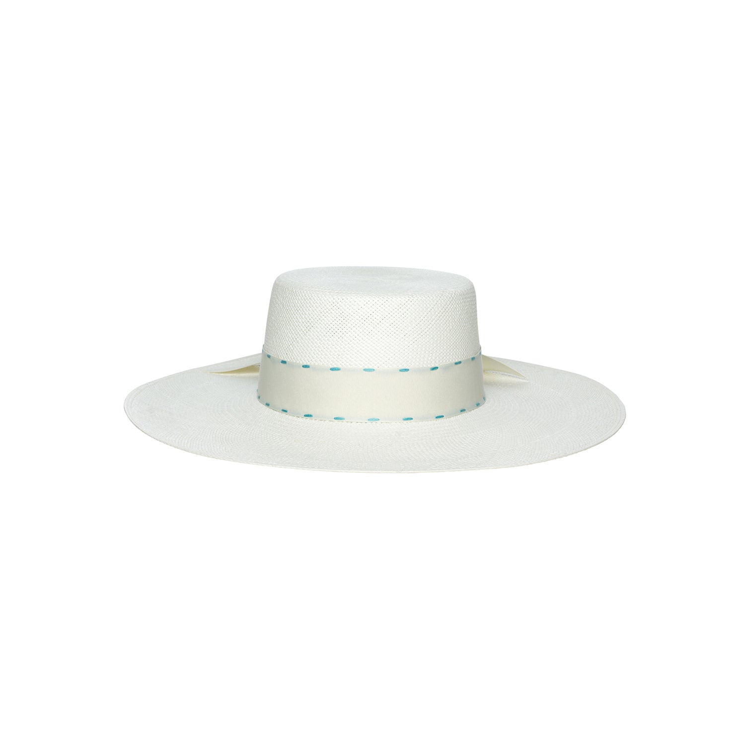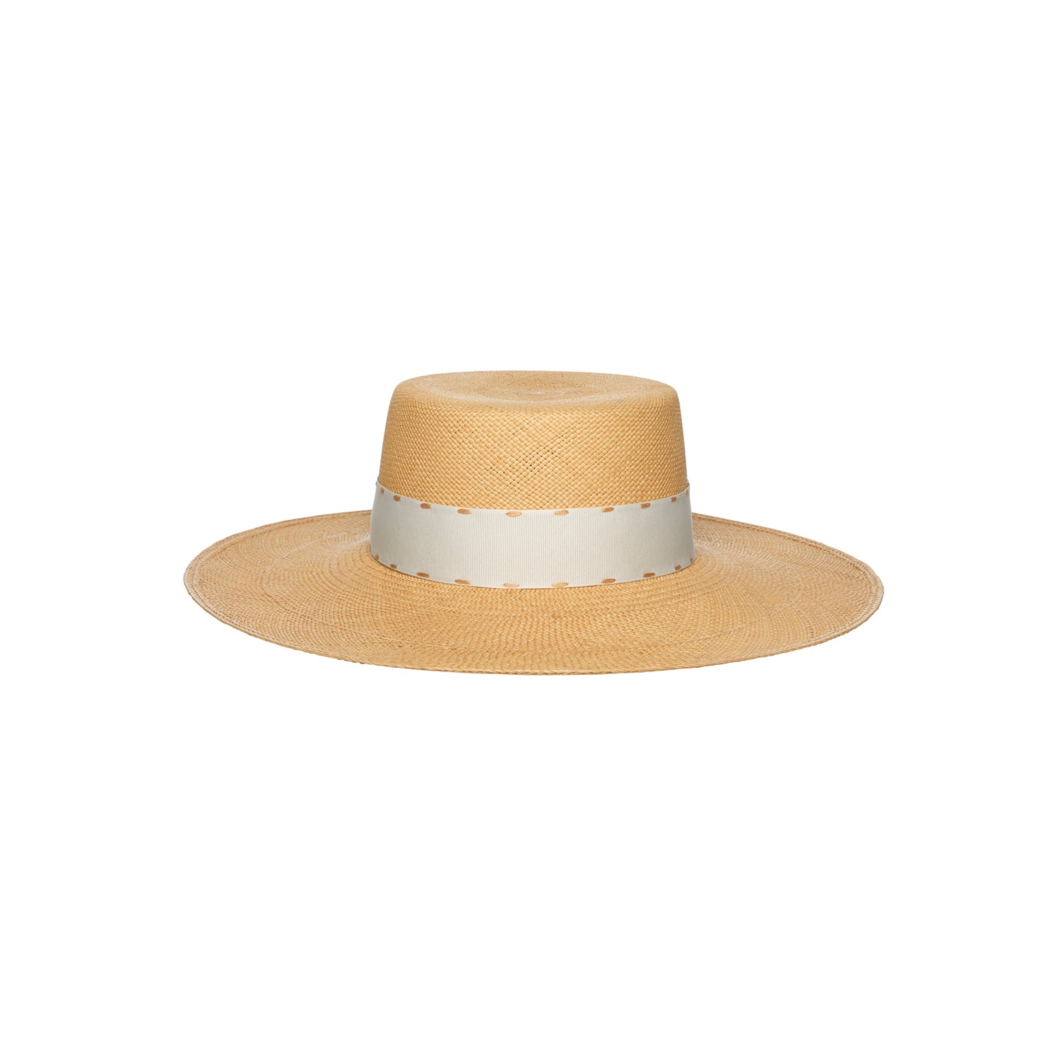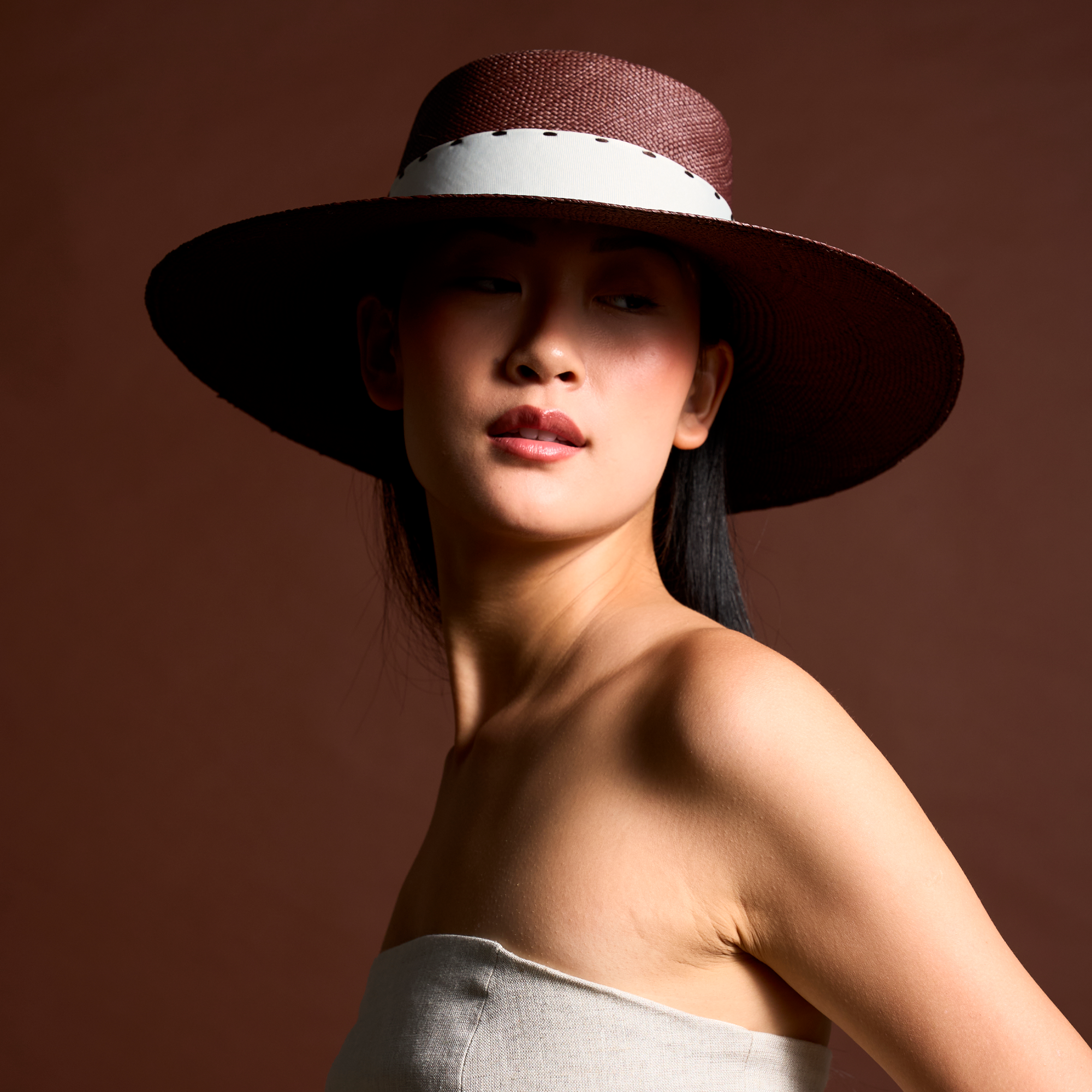 A beautifully crafted ribbon band with intricate embroidered details encircles the boater crown, adding a delicate yet distinctive touch. Handwoven from natural Toquilla straw, the Amalia Hat blends classic structure with modern refinement.