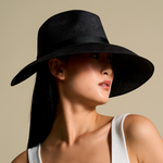 Our first visor hat, the Anna features a wide brim and flat back with a monochrome natural ribbon band detailing. Specifically designed for laying down, its lightweight weave makes it comfortable and functional.