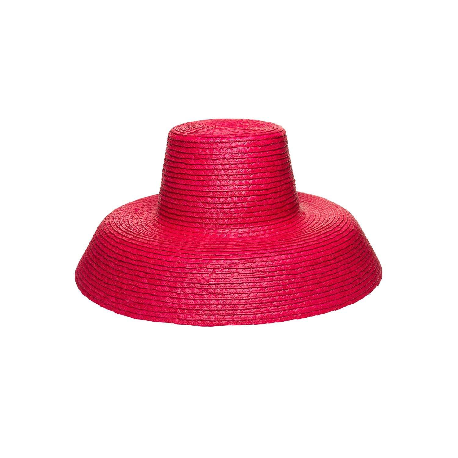 Red straw sun hat made from natural mocora straw, perfect for sunny days in Bali