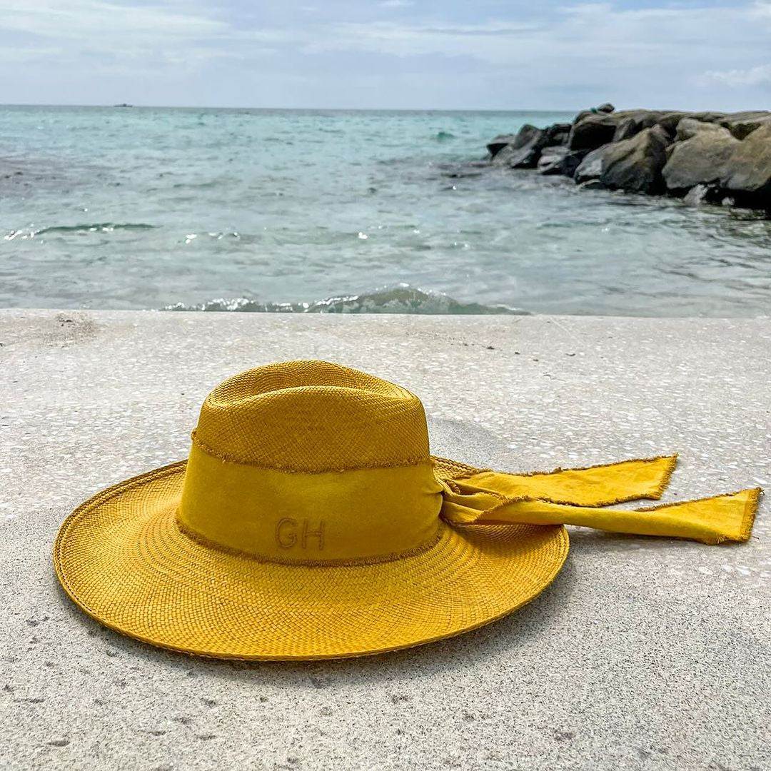 Yellow hand dyed toquilla straw sun hat from Izu Resort, a genuine Panama hat