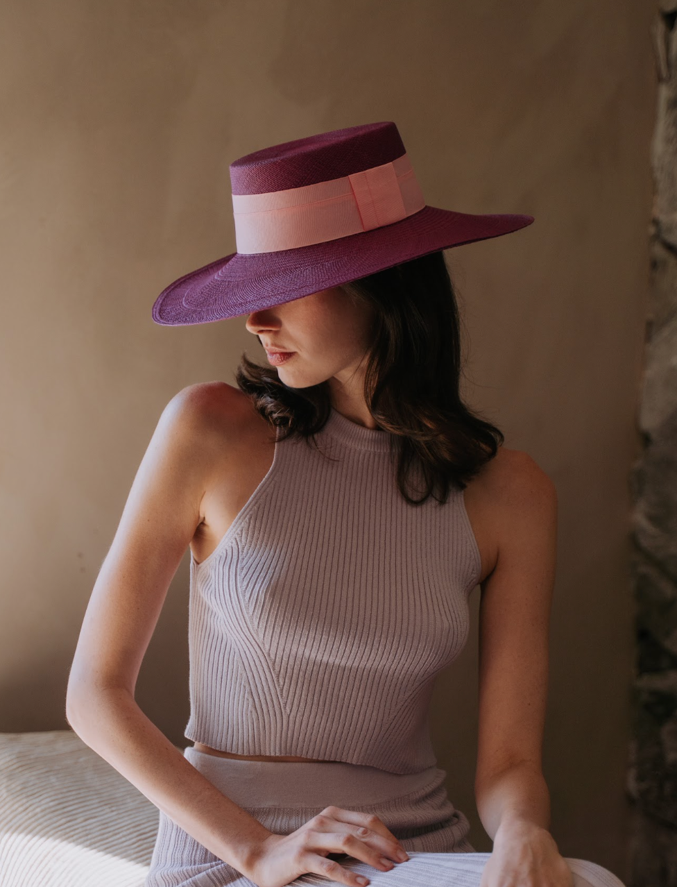 The Lanai features a classic boater crown and 4 inch brim with a thick ribbon band.