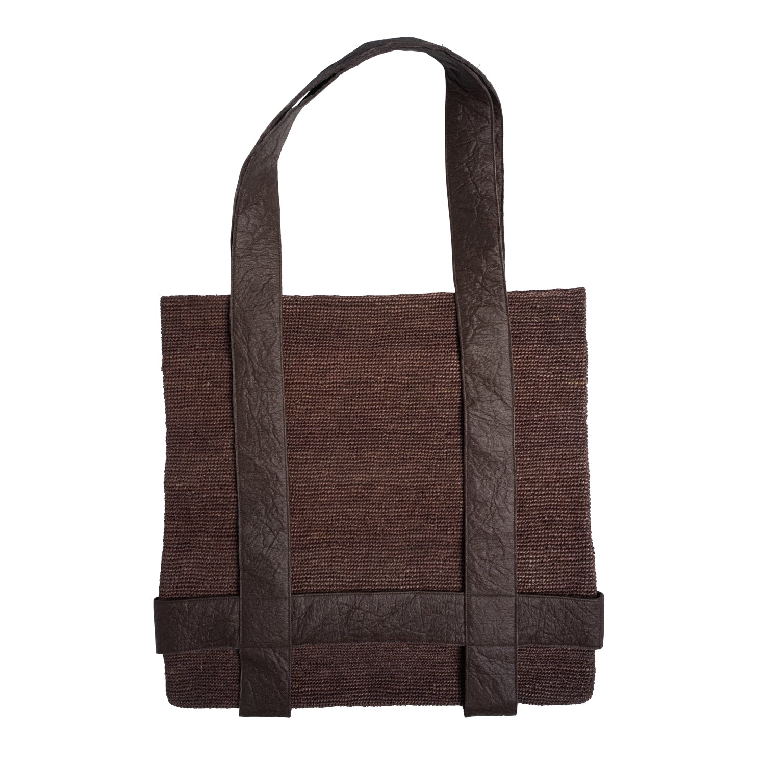 Black textured tote bag from Nativa, crafted with natural toquilla straw material