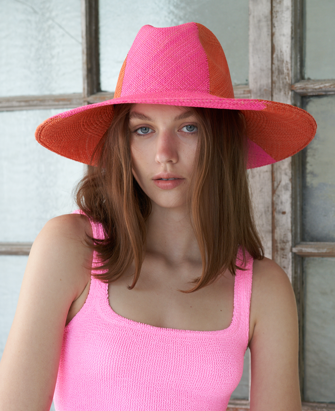 Our wide brim Pisa hat is a new spin on the two tone that we love.