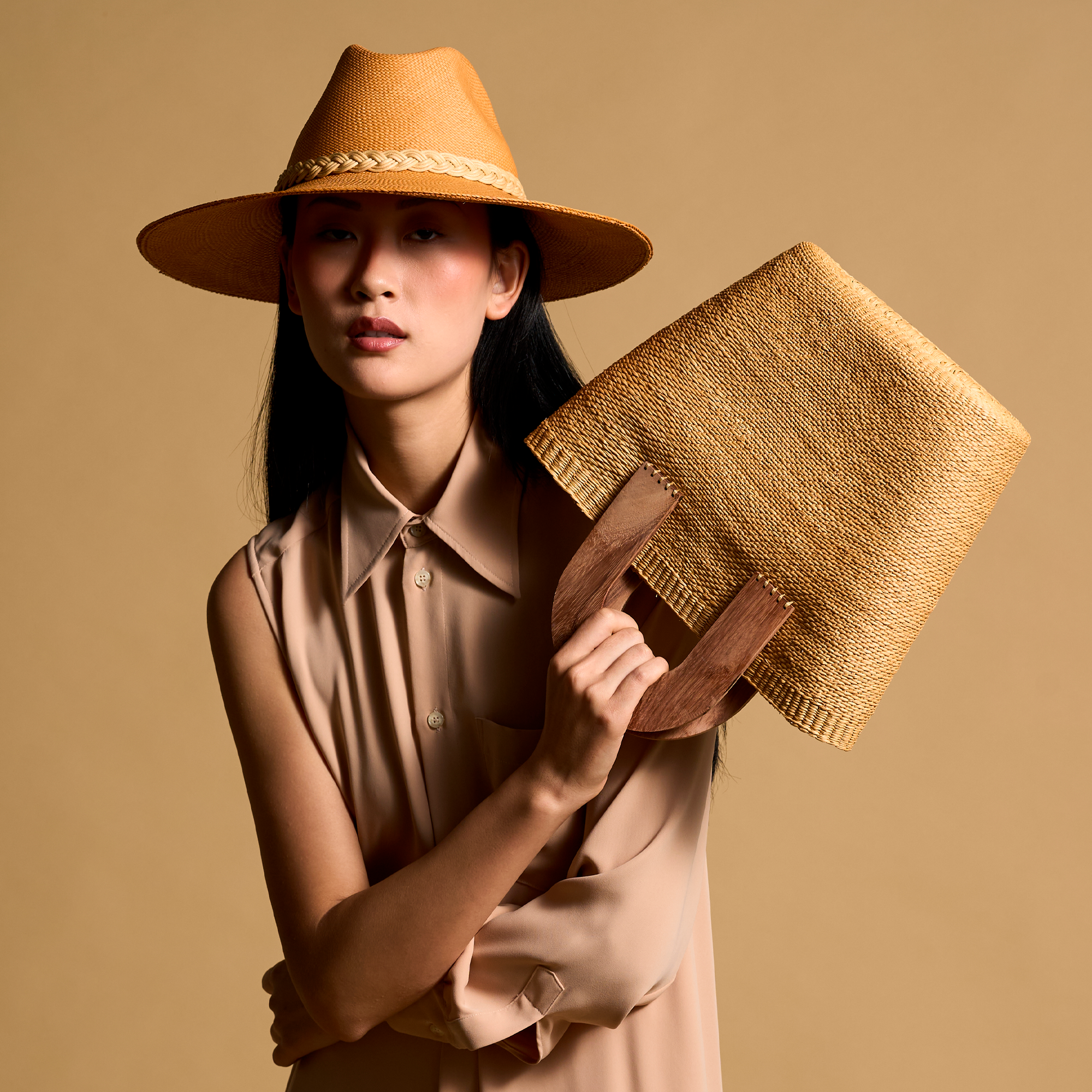 Also known as Panama straw, this premium material comes from the leaves of the Toquilla palm tree, which is native to Ecuador and other parts of Central and South America. Toquilla straw is known for being lightweight, flexible, and weatherproof. It's often used to make handwoven Panama hats, which are known for their quality and luxury.