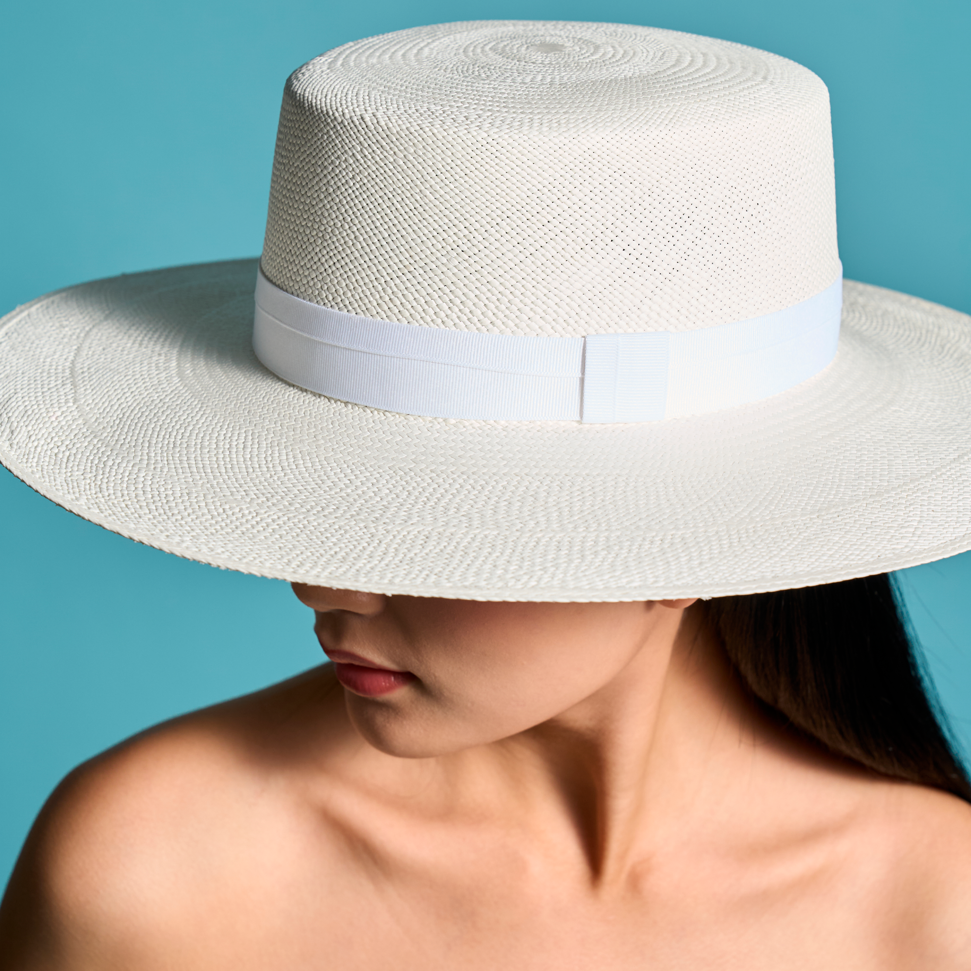 A study in timeless elegance, the Rocha Hat captures the essence of classic craftsmanship. Handwoven from natural Toquilla straw, this structured boater silhouette is defined by clean lines, a flat crown, and a four-inch brim that offers refined sun protection.