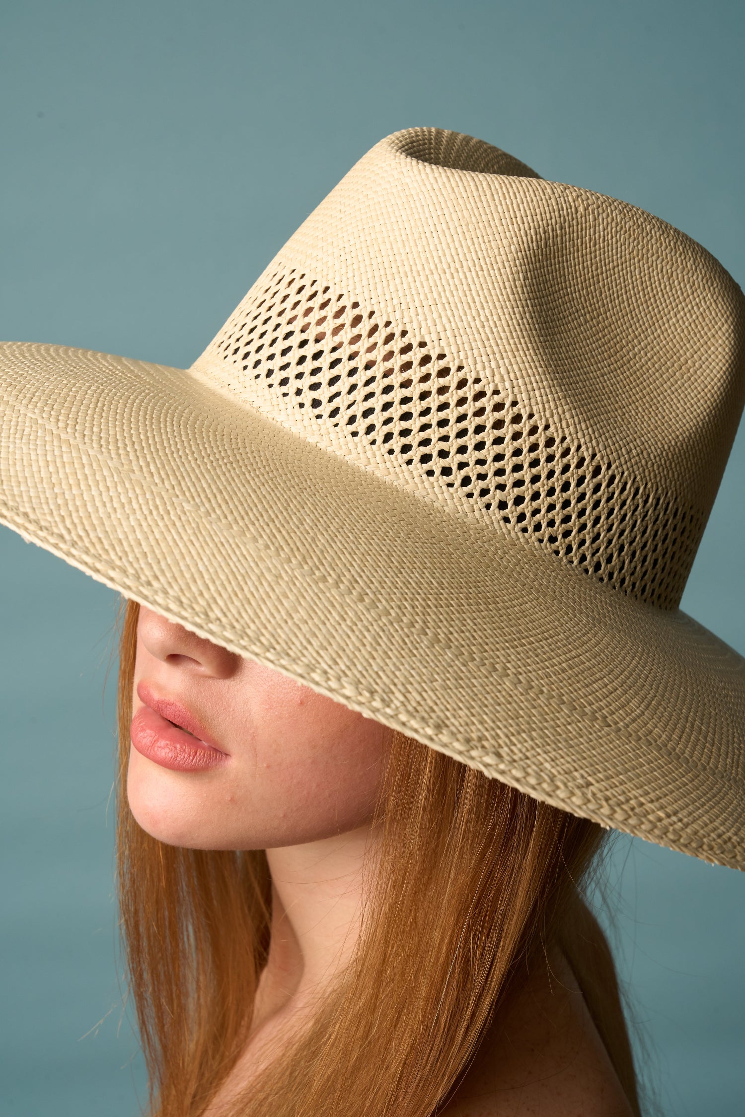 Also known as Panama straw, this premium material comes from the leaves of the Toquilla palm tree, which is native to Ecuador and other parts of Central and South America. Toquilla straw is known for being lightweight, flexible, and weatherproof. It's often used to make handwoven Panama hats, which are known for their quality and luxury.