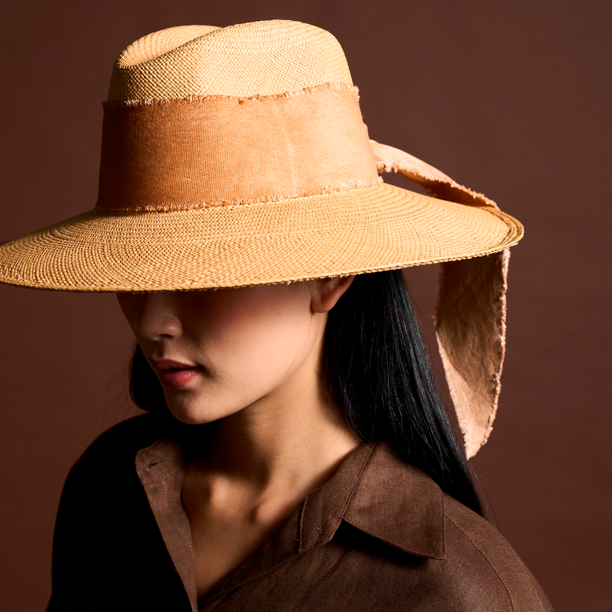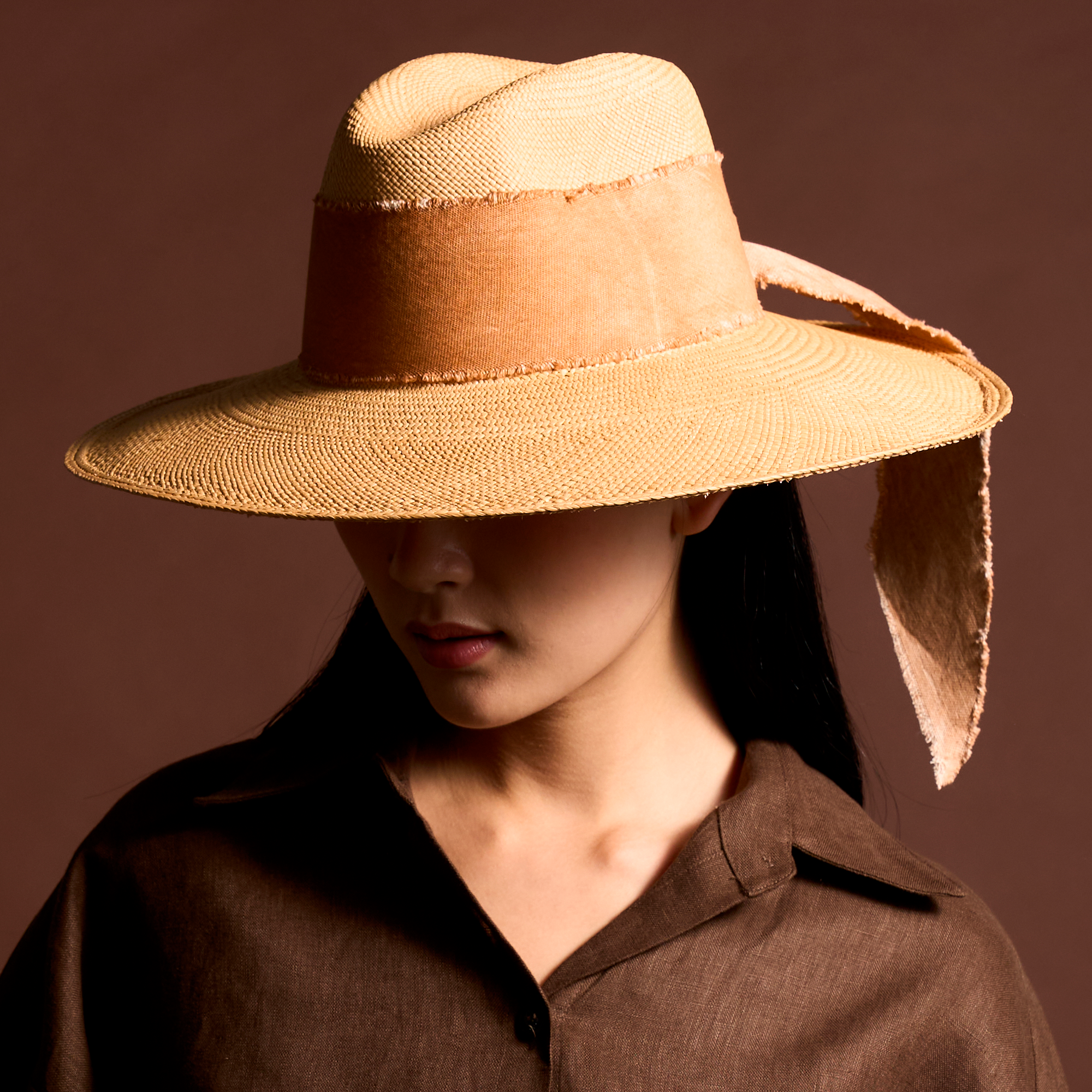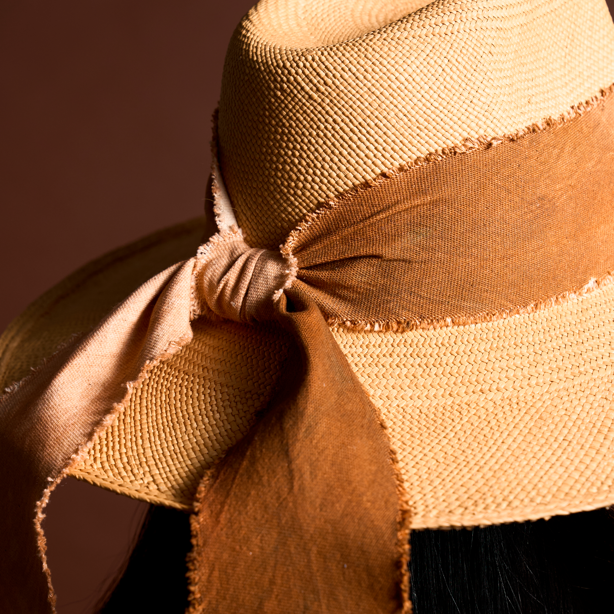 Also known as Panama straw, this premium material comes from the leaves of the Toquilla palm tree, which is native to Ecuador and other parts of Central and South America. Toquilla straw is known for being lightweight, flexible, and weatherproof. It's often used to make handwoven Panama hats, which are known for their quality and luxury.