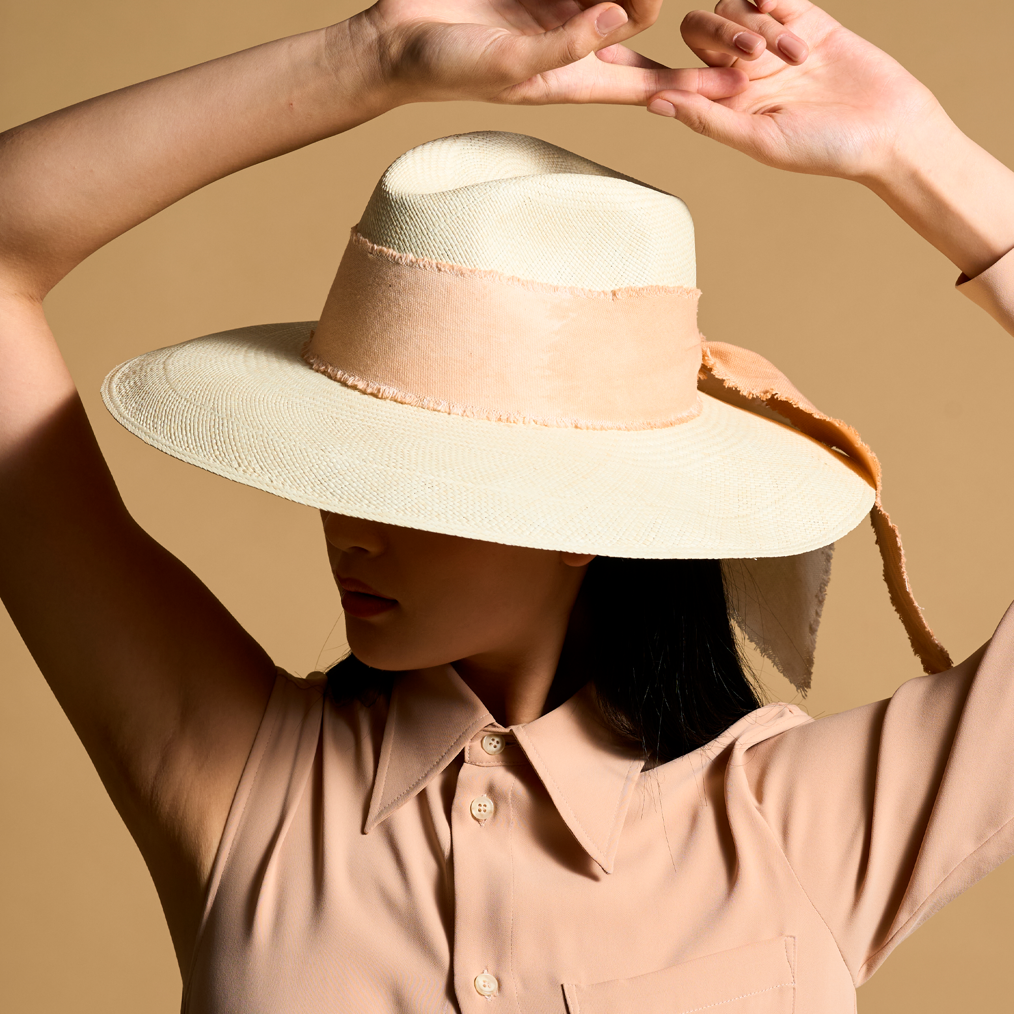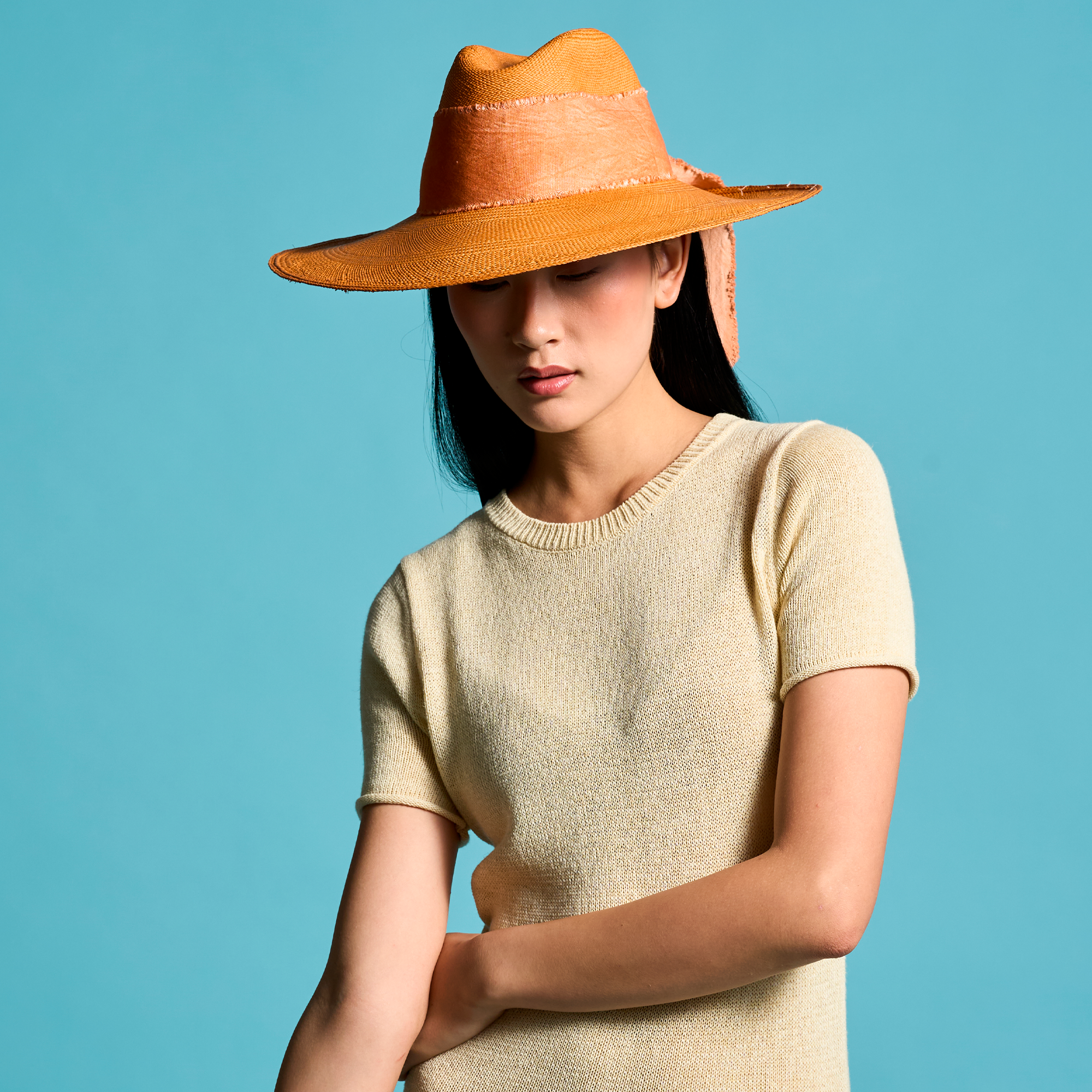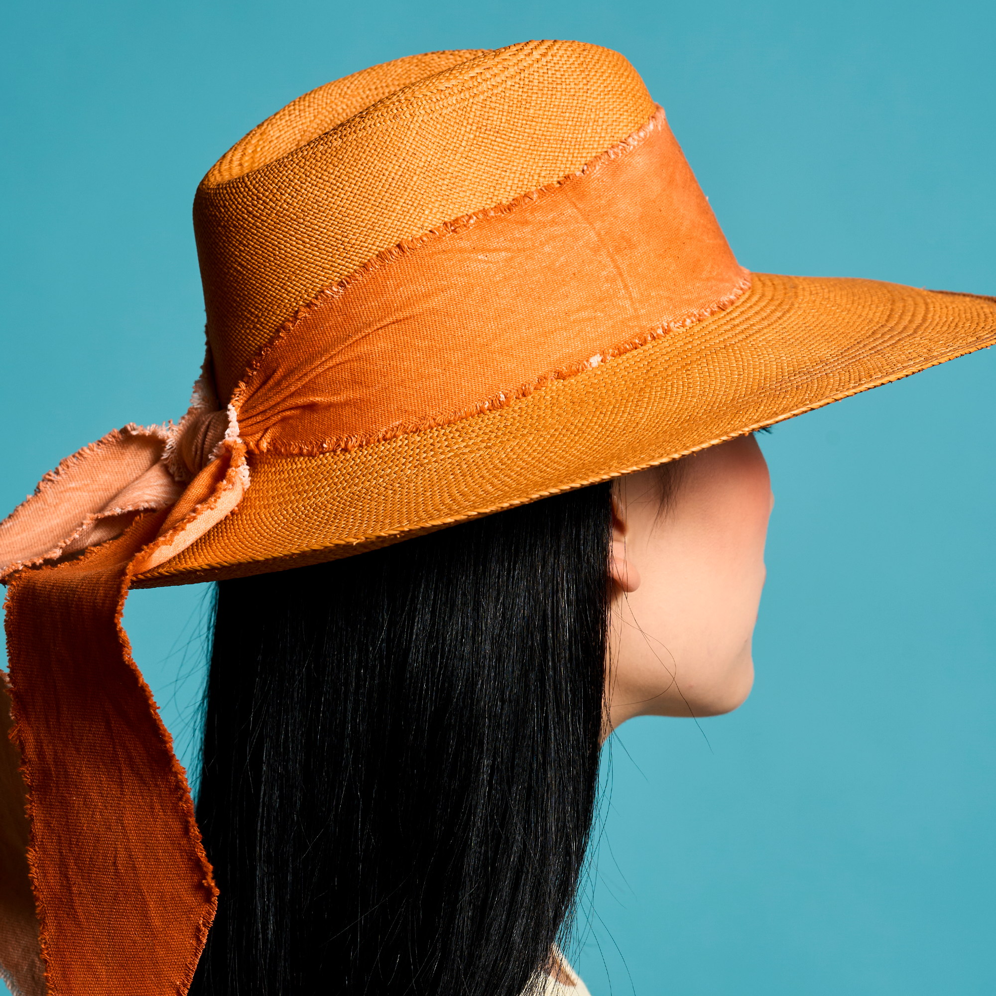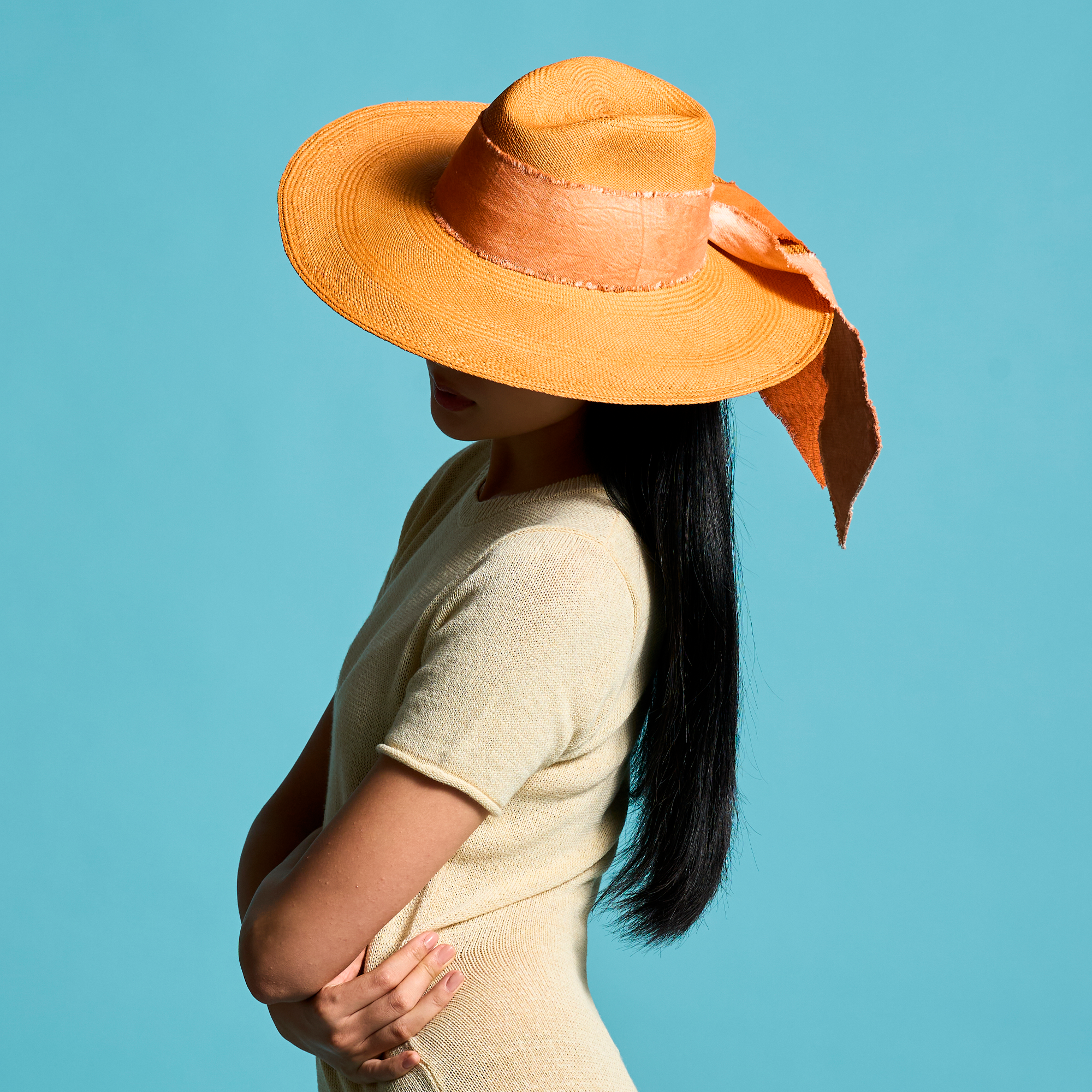 Also known as Panama straw, this premium material comes from the leaves of the Toquilla palm tree, which is native to Ecuador and other parts of Central and South America. Toquilla straw is known for being lightweight, flexible, and weatherproof. It's often used to make handwoven Panama hats, which are known for their quality and luxury.